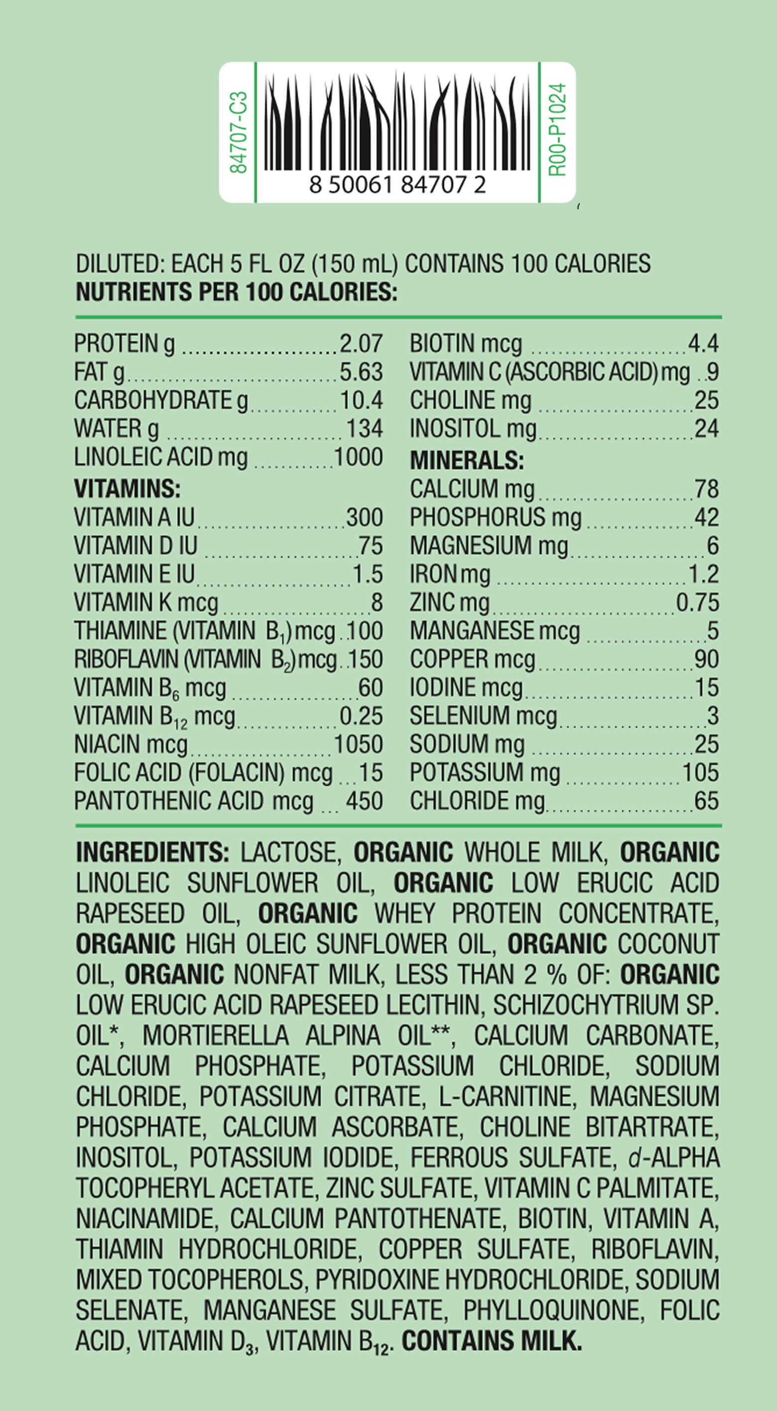 Organic baby formula,