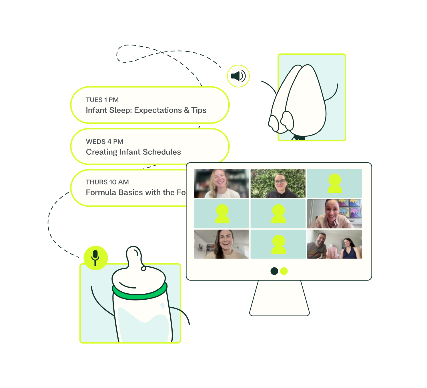 - Live education sessions from infant sleep specialists, lactation consultants, RNs and more industry experts to answer all of your year one questions.