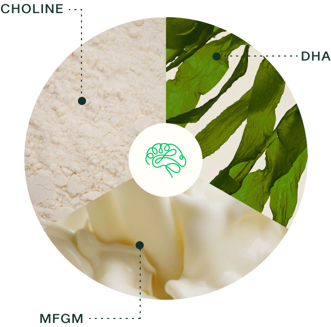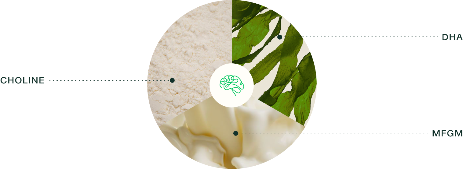 Choline, naturally occurring MFGM from milk fat, and DHA for brain development