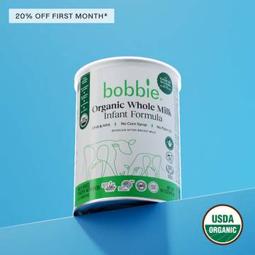 Bobbie's Organic Grass-fed Whole Milk Infant Formula is crafted with premium ingredients to support your baby's nutritional needs from day one. Made with grass-fed organic whole milk, our formula offers essential nutrients, proteins, and healthy fats with less oil that mimic breast milk to nurture your baby’s growth and development. Bobbie is committed to providing a clean, complete, and balanced formula that is gentle on little tummies, supporting softer stools. Lactose allows us to leave out the artificial additives such as corn syrup, or palm oil. Our organic formula is non-GMO, ensuring your baby gets only the best. Discover the benefits of Bobbie’s Grass-fed Organic Whole Milk Infant Formula today.